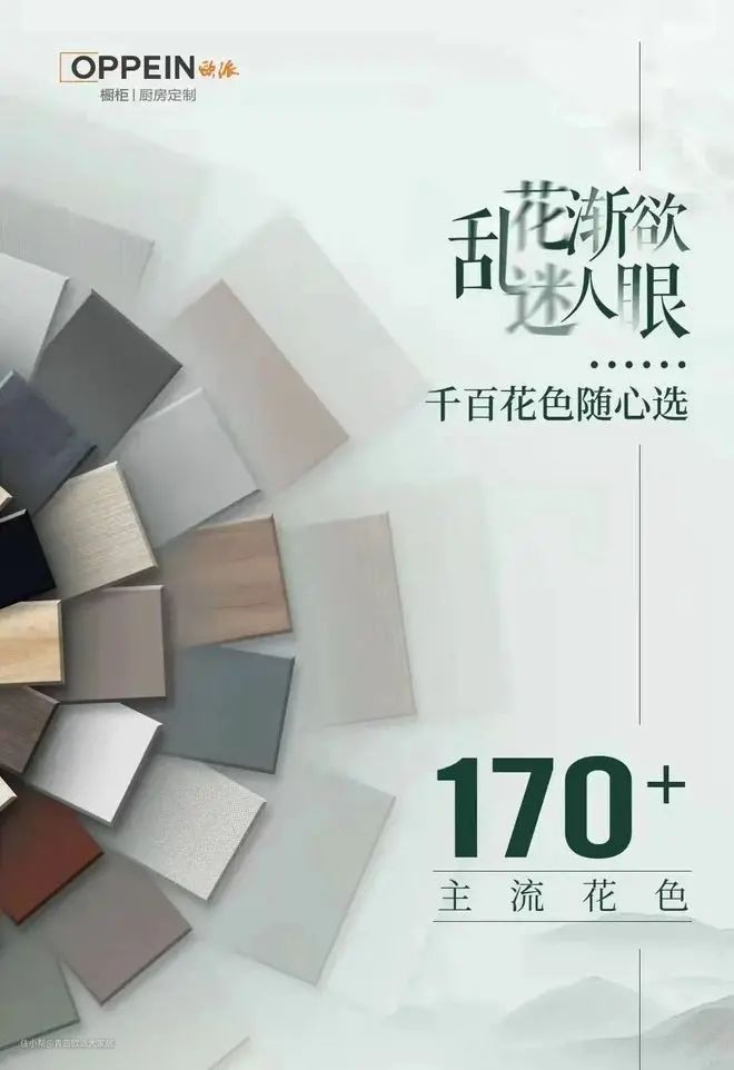 2、花色丰富。欧派橱柜有多达172种门板花色,可供选择多。