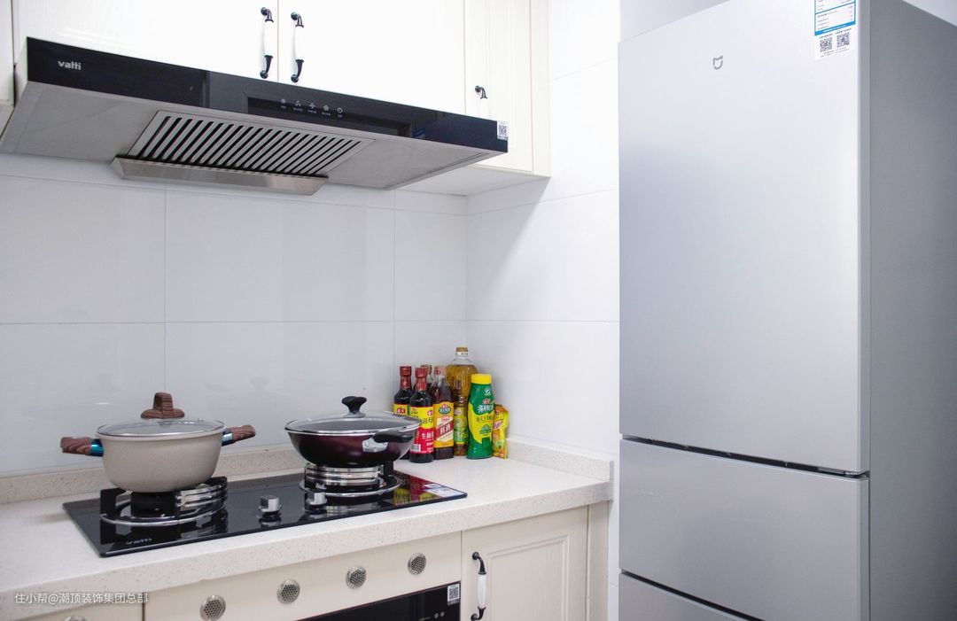 极简的U型厨房设计,将烹饪区与清洁区分开,让操作流程更加流畅,给烹饪一种简单又美好的烟火氛围。 左侧单向顶部储物柜采用内置家电设计,美观且储物性能十足。 大地色的地砖搭配白色和黑色的橱柜,面向阳光。 当光线进来的时候,整个厨房简洁而明亮。 #厨房#窗台#已关闭#储物柜#地砖