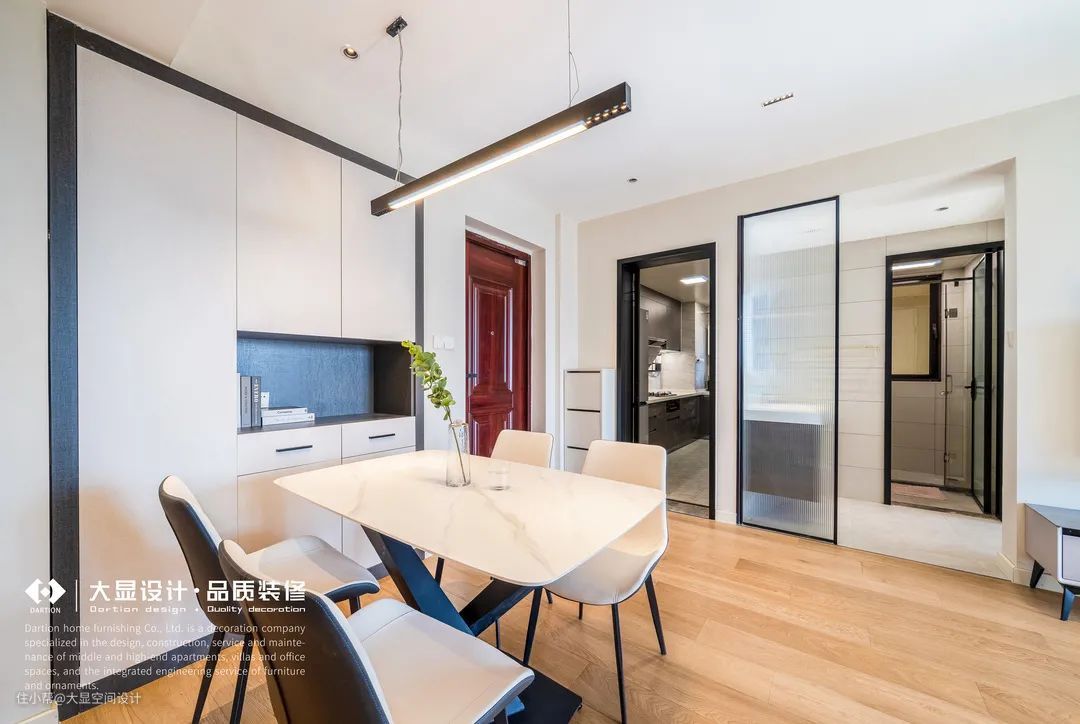 压花玻璃进行干区与公共空间的隔断,完全符合现代简约风大气通透的设计要求。