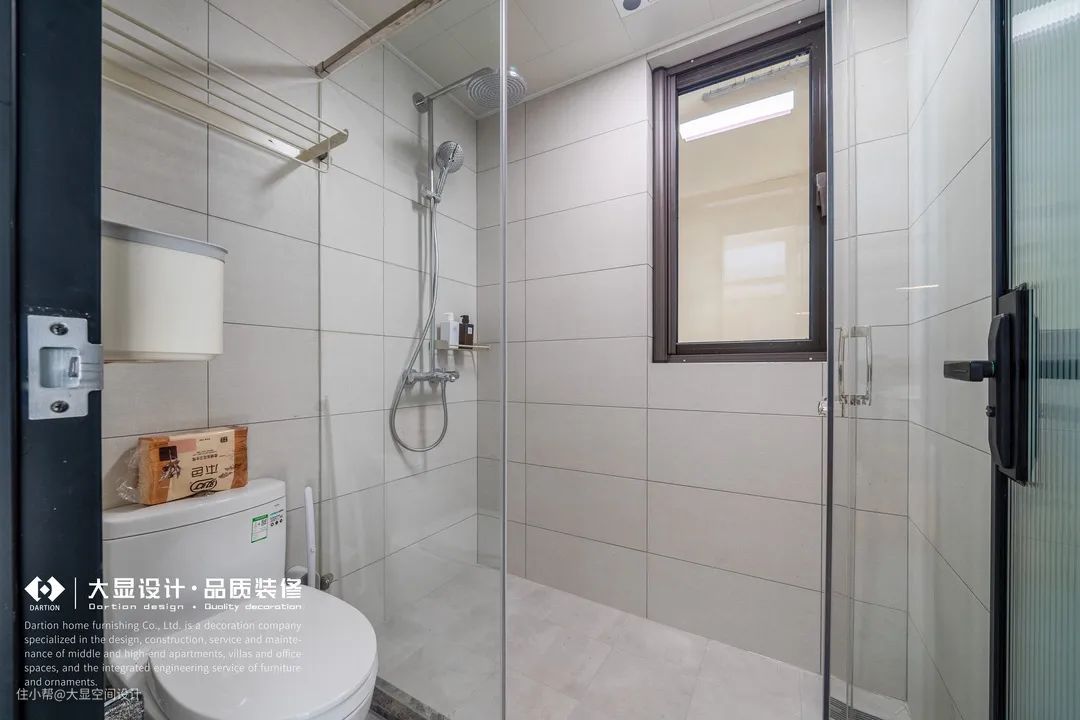 淋浴区与马桶也进行了隔离,玻璃门阻挡四溅的水花。窗户则利于通风,使整个空间不至于湿闷。