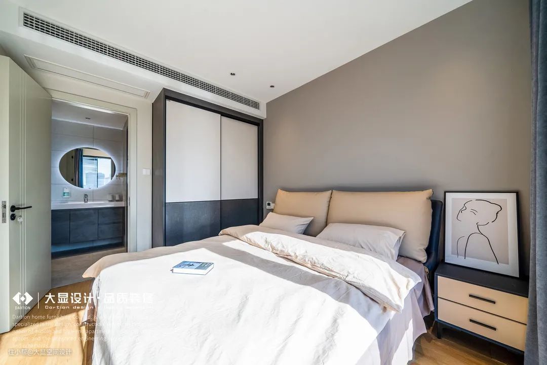 两侧床头柜分别放置着不同的东西,却不显得杂乱,反而有一种生活的热爱感在里面。筒灯布局,减少光线死角,又使整个空间比较明亮自然。