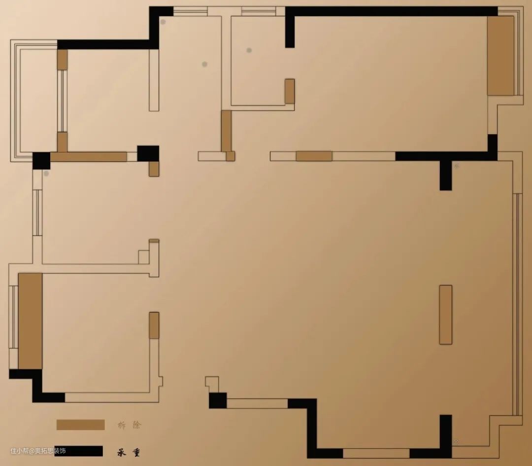 4. 主卧进门相邻的墙拆除,更改门的位置。