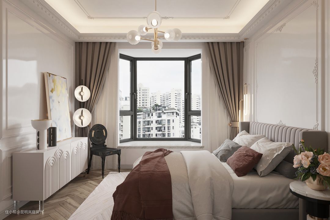 1、主卧,主卧的装修风格一般是和房间的整体基调相符合的,同时色调要兼具舒适、沉稳的特点,颜色不宜饱和度过高,空间的收纳可以集中在床尾、床头、和侧面靠墙的地方。