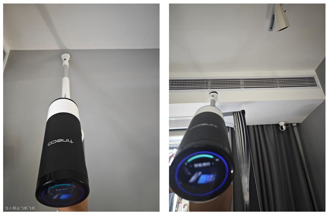 刷头换成二合一的毛刷,就可以轻松实现墙壁、天花、空调等高空位置的清扫,男生单手可以轻易完成,女生双手也能很轻松的完成清扫。