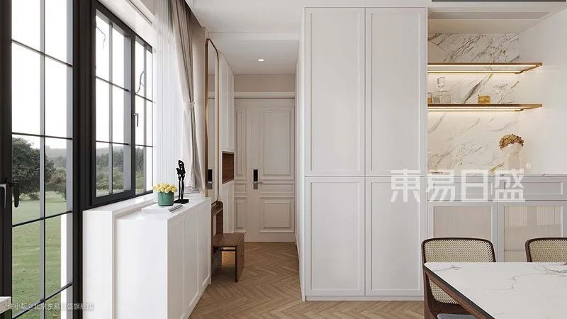 - 入户靠墙做鞋帽柜、衣帽柜、穿衣镜和折叠换鞋凳,增加入户功能区。