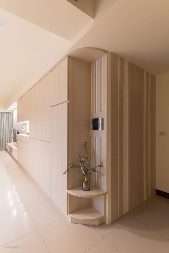 大多位于玄关附近,除了借助本身的墙面转角,有些家里面积相对充足的,也会单独设转角柜,避免入户见厅或者单独腾出个衣帽间、储物间,成功实现小面积内的最大增容。