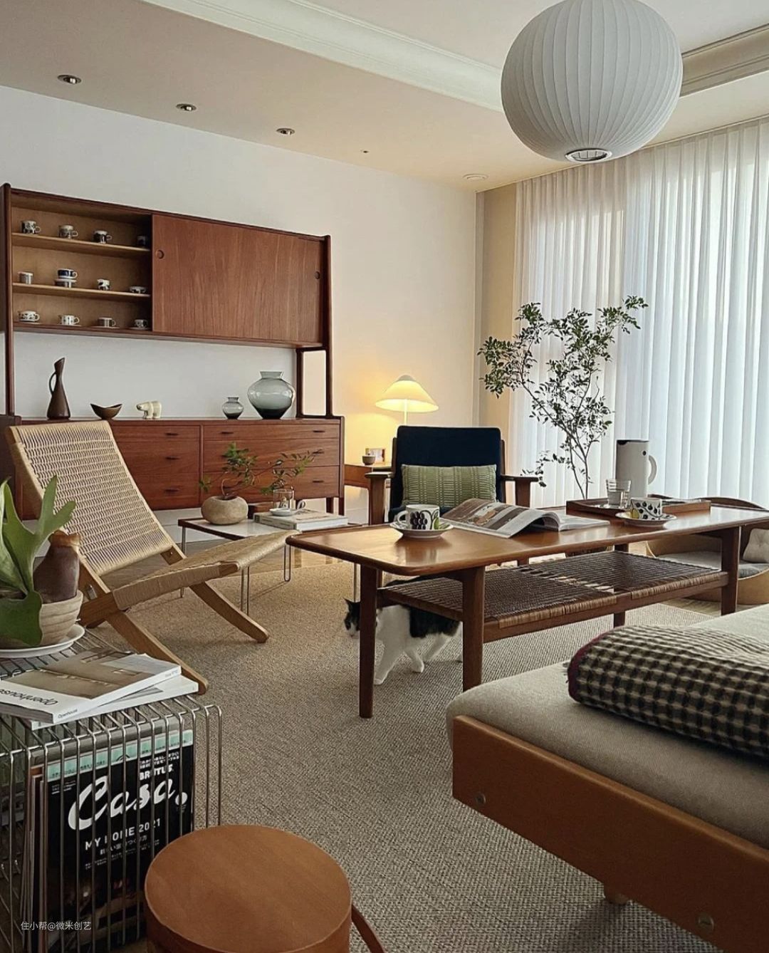 其次,软装方面。中古风装修的软装注重质感和复古氛围,建议使用棉麻、丝绸等天然材质的家居用品和装饰品。窗帘、床单、沙发垫等可以使用纯色或简单的图案,以突出中古风的简约和自然。同时,中古风装修的软装需要注重色彩搭配,建议使用棕色、米色、浅灰等柔和的色调,以突出复古氛围。