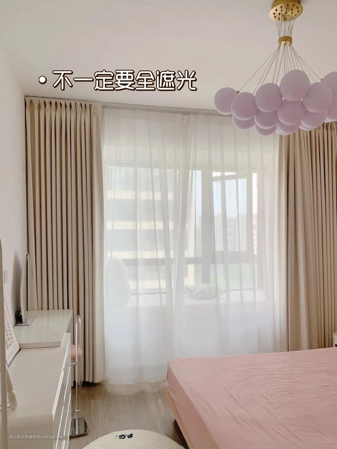 如果要做遮轨处理,可以使用可调节挂钩或者韩式褶皱,遮轨效果严丝合缝。
