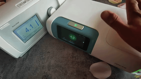 鱼跃也是智能调压全自动的呼吸机,理论上也是自动运行,不过灵敏度是个关键。官方宣传戴上面罩开始治疗摘下面罩一分钟后停止。发现没有乐普是5秒即停,鱼跃是一分钟后。是技术的问题呢?还是理念不同调节的问题?这我就无从得知了。懂的朋友可以探讨一下,从动图上可以看到,模拟呼吸节奏,测试全自动控制对压力感应的灵敏性,屏幕上动态显示和我手压供气管的节奏总是有延迟,感觉慢半拍。