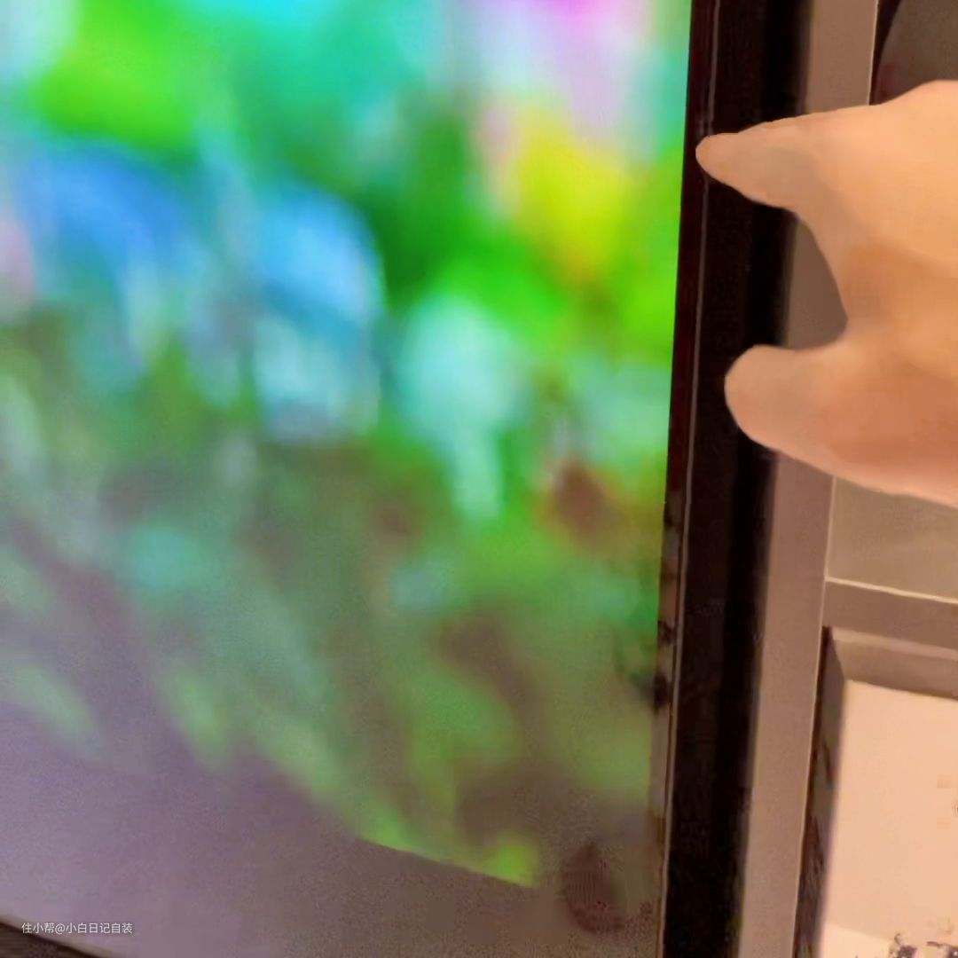然后挂上电视以后电视这样式的,如果觉得可以差一点意思的话可以拿垫片来回找一找。但是如果你做薄了的情况下,那么电视将没法调节会很难看。再就是缝隙的情况下看看见我家这是二点五,因为我留的是幺一米七二,这是七五的电视,然后七五的是留一米七二以后,两边各二点五厘米,但是上下我是留的是幺零二,然后上面三厘米下面三厘米,上面一旦达到三厘米,一旦达到三厘米非常的轻松挂和拿。