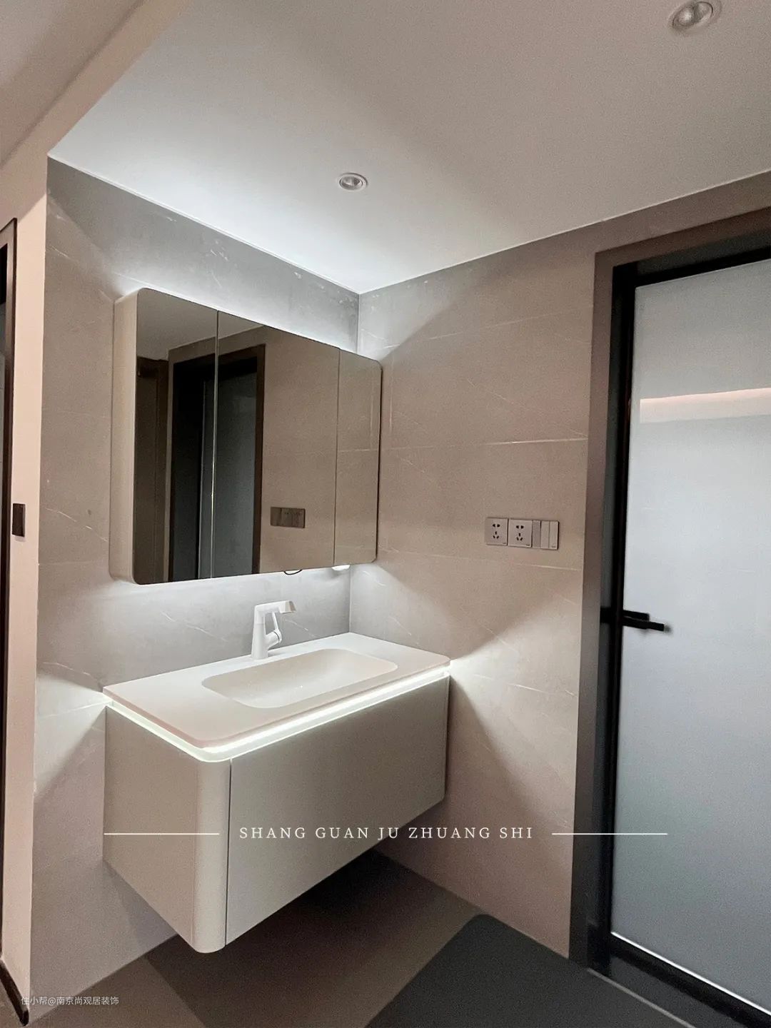 卫生间做了干湿分离,洗手台与墙面都采用了白色的色系,显得格外清爽、干净。