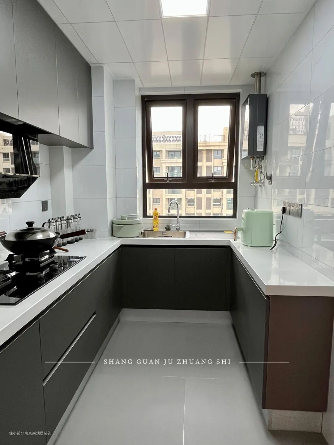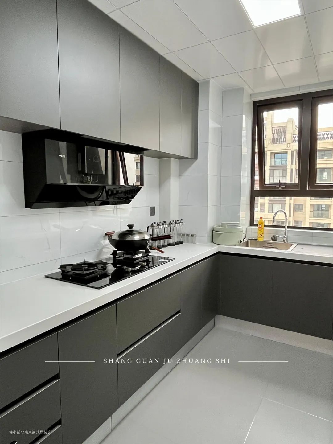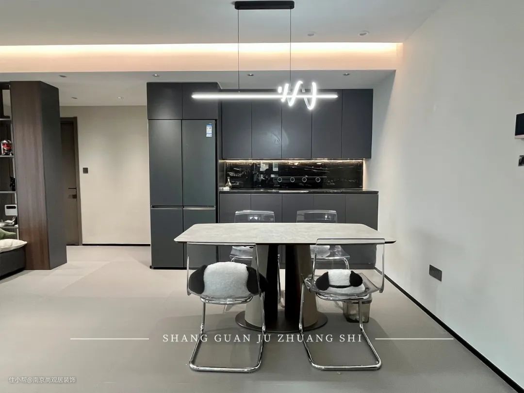 整体黑白灰设计,高级显大,开放式设计,让人一看就很开阔、整齐,烘托出温馨的家庭氛围。
