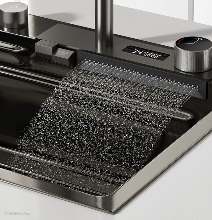 这里的多功能不仅仅是水龙头为抽拉式,另外还有专门洗杯子水龙头,和专门洗菜水龙头,这样均匀节省使用水,提升使用效率。
