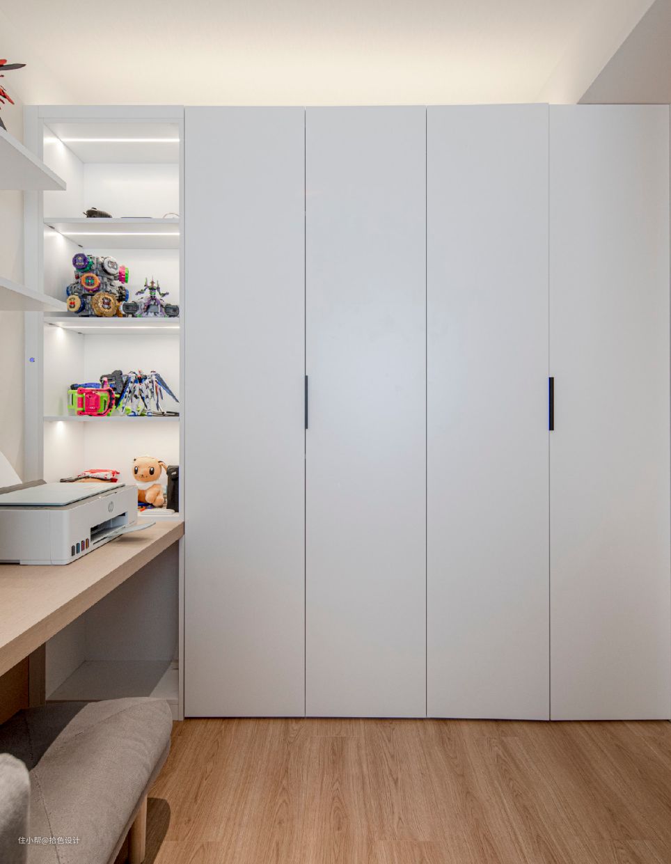 家政区门外增加转角储物柜,方便过季衣物和日杂物品收纳,并且还具有了一定的储物弹性。