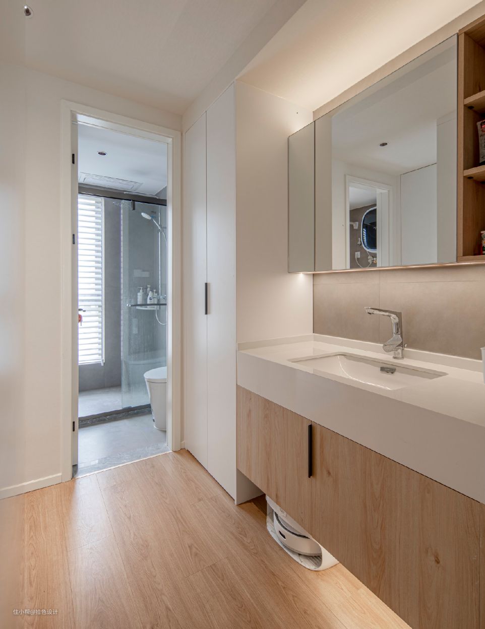 卫生间洗漱台做了独立外置处理,在满足干湿分离的同时,也让生活更加高效了。
