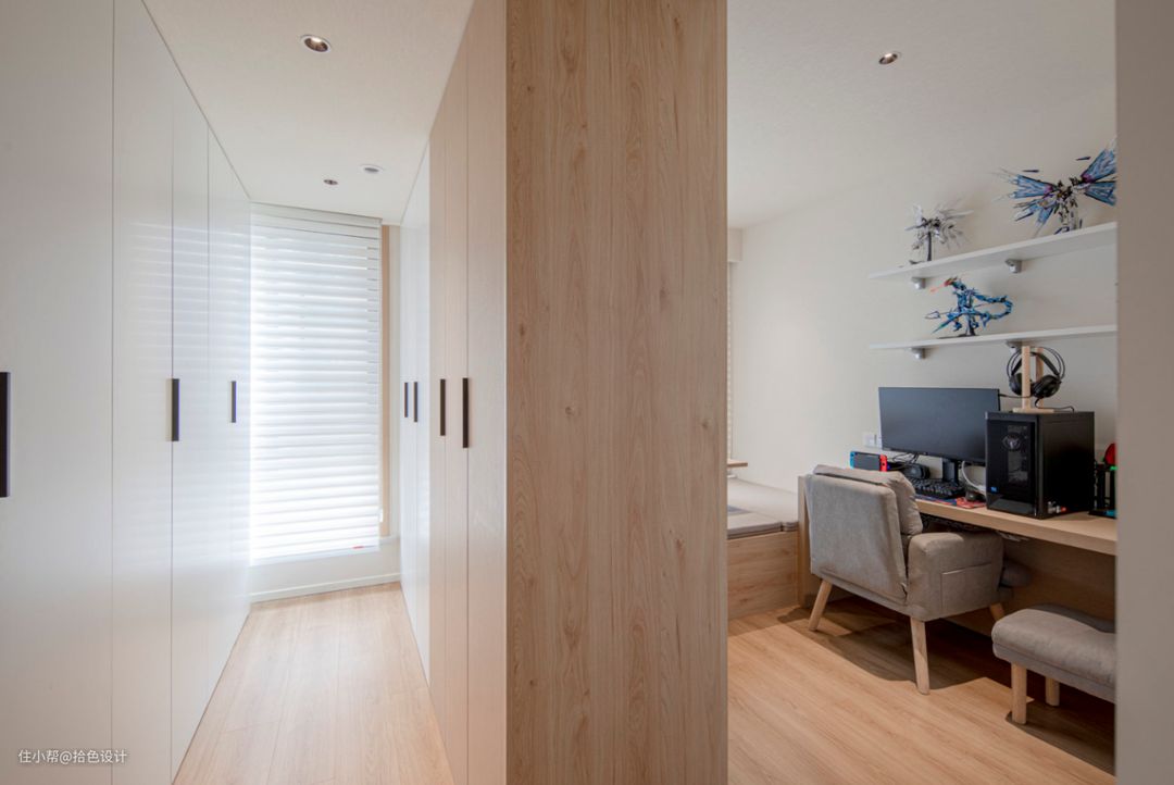 当主卧采用套间设计之后,取消原有的次卫,并改造成一个衣帽间,立马就为家里扩充了大量的储物能力,实现收纳自由。