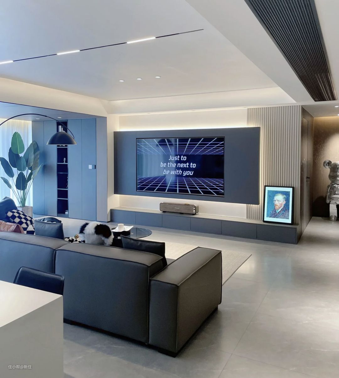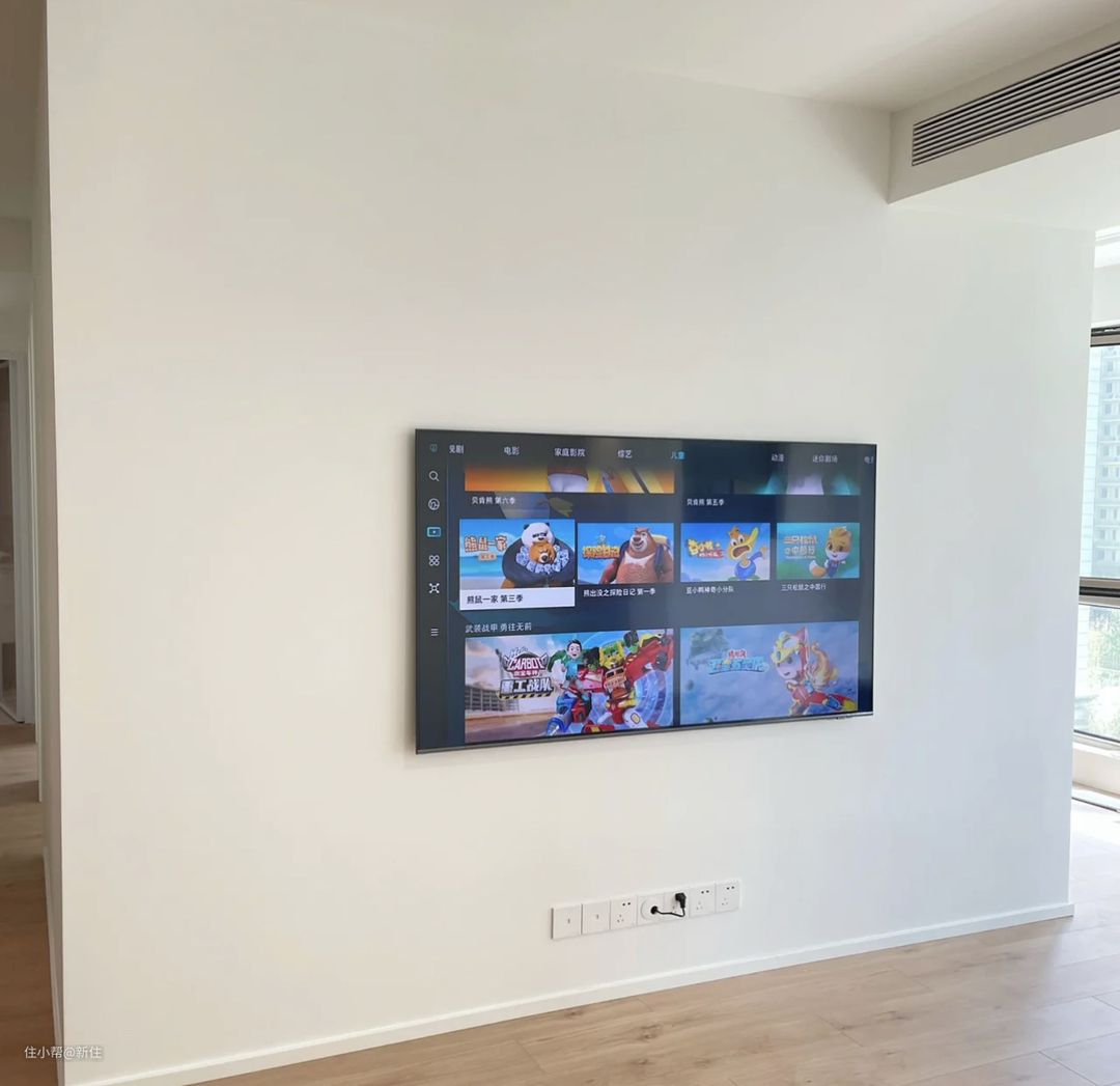 当然,要达到图片上的极简效果,除了预埋和盒子外,还有一个非常关键的部分,就是电视。