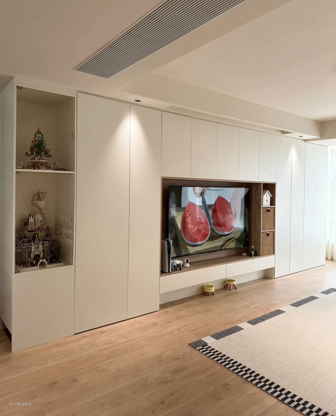 尤其是在客厅这种全家人的高频动线轴上,拥有柜子=拥有整洁,公共物品有处安放,客厅少了随手乱放的物品,真心整洁不少,而且就在眼前,拿取、整理都很方便。