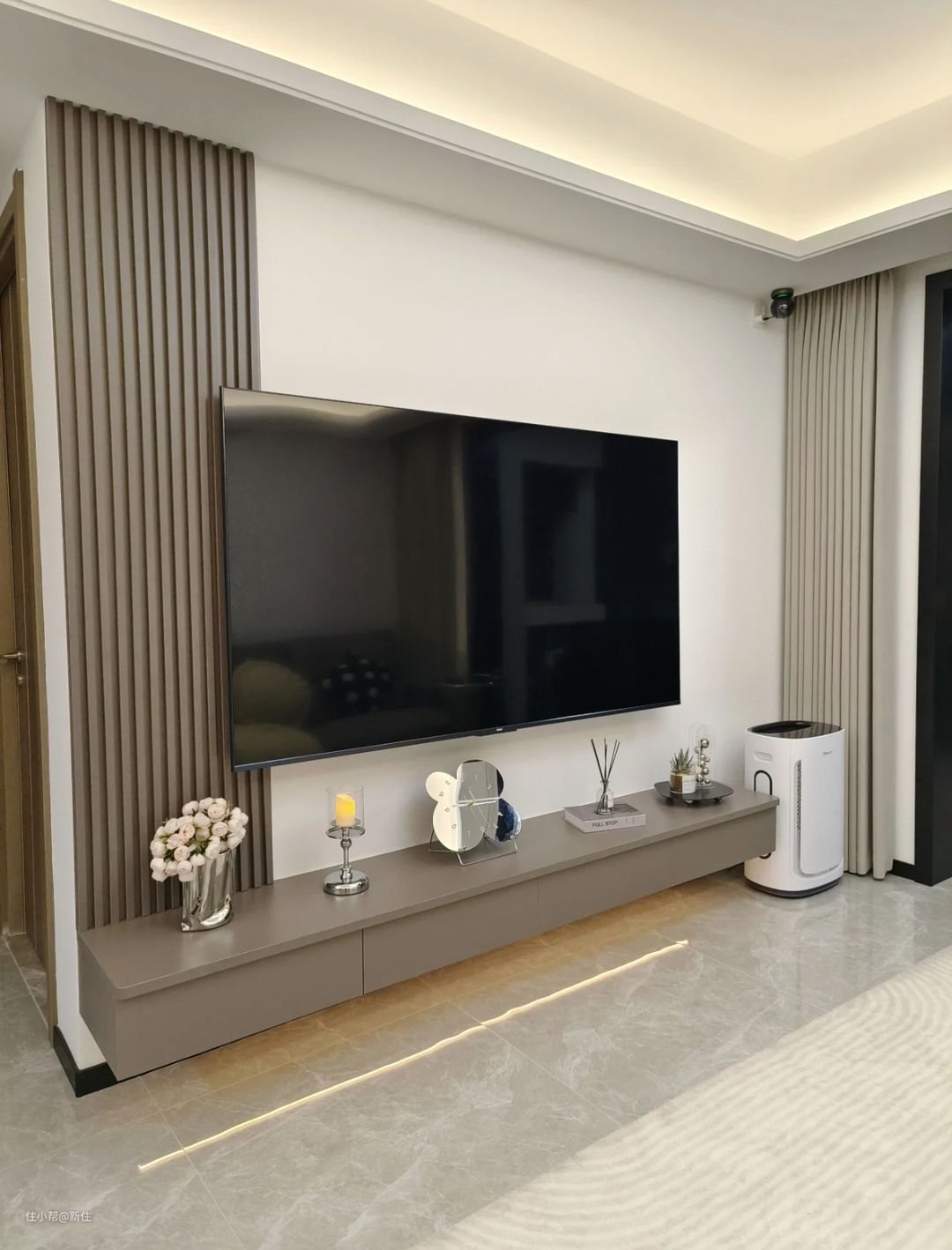 又相比复杂的电视墙预算要低很多,无论是成品电视柜还是定制的悬空电视柜,价格大多在一两千,不会对刚买房的我们造成经济压力。