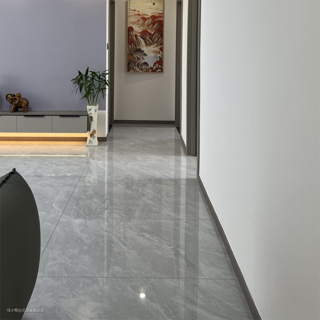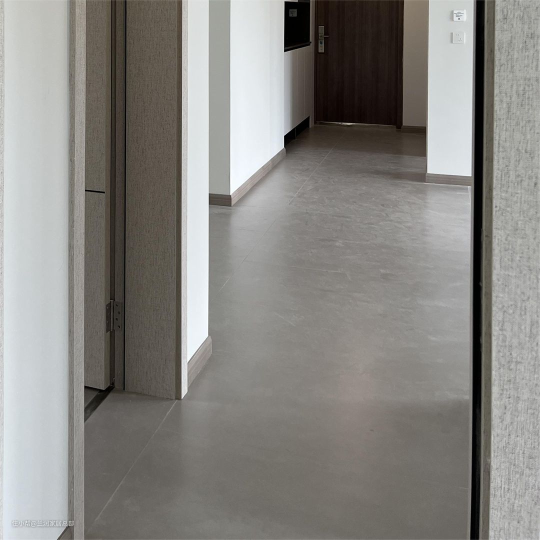 铺设灰色系瓷砖,美缝尽量选择和瓷砖相近的颜色,看起来才不会有明显的分割感,通铺视觉上更加通透、大气。