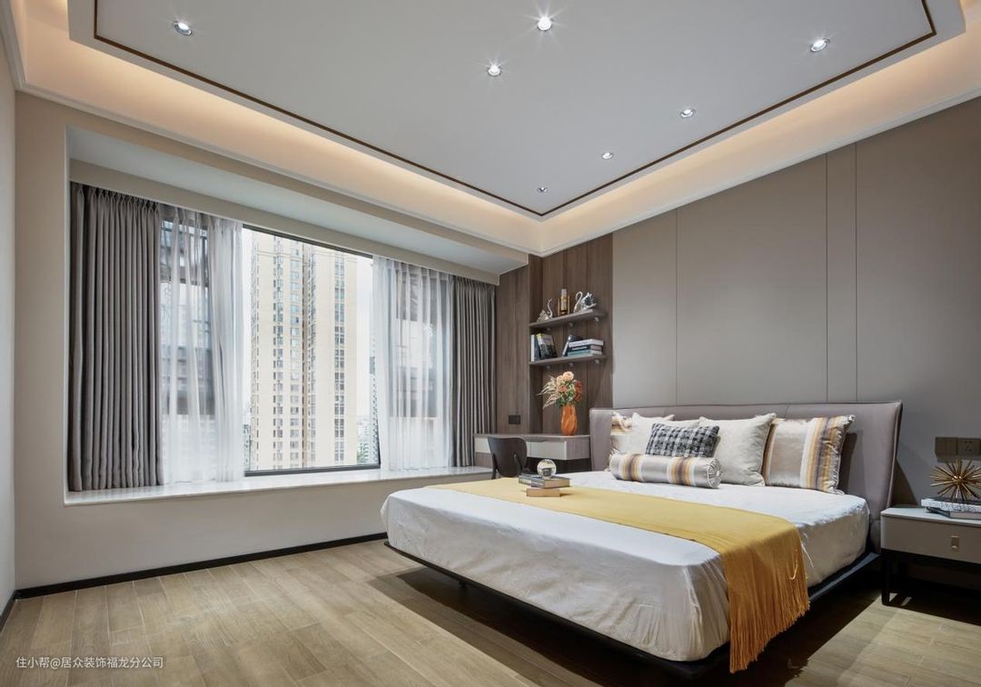 纯色窗帘相对比拼色更容易搭配,与室内融合度高,高级又不容易踩雷,拼色窗帘颜色鲜艳不是一般家庭能hold住的,对室内的整体设计软装搭配要求较高,搭配不好容易增加杂乱感。颜色深浅度和遮光率有一定的关系,相同密度下,颜色越深遮光率越高,遮光效果就越好。 卧室的窗帘,建议选择深色调的,搭配纱帘,隐私性和睡眠舒适度都有保障。客厅区域可以选浅色窗帘,毕竟客厅需要采光明亮。需要注意,窗帘色调要与室内装修风格搭配和谐,安装后才不影响空间美感。