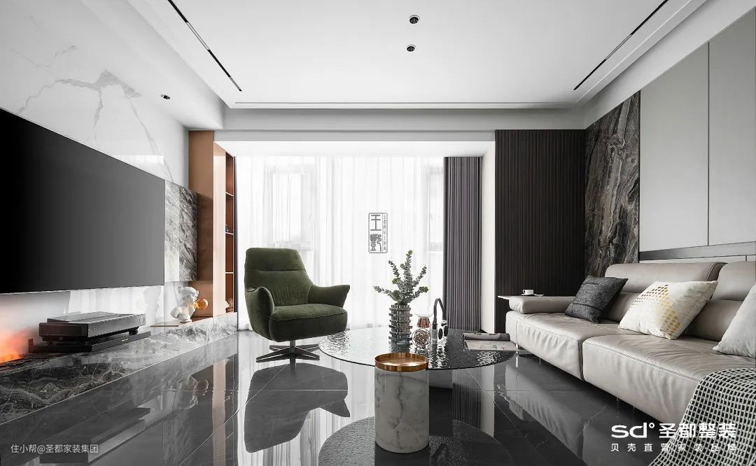 宽度>6米的沙发背景墙可以选择转角沙发或者3+1+1的沙发。