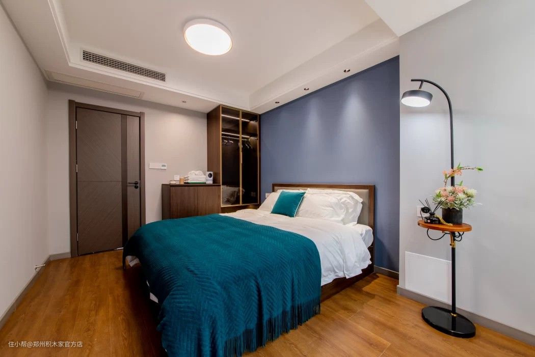 次卧蓝色的背景墙能够让人感到宁静和平静,这对于睡眠质量的提升有着积极的影响。当我们躺在床上,看着这一面蓝色的墙壁,内心立刻感到放松和安宁。