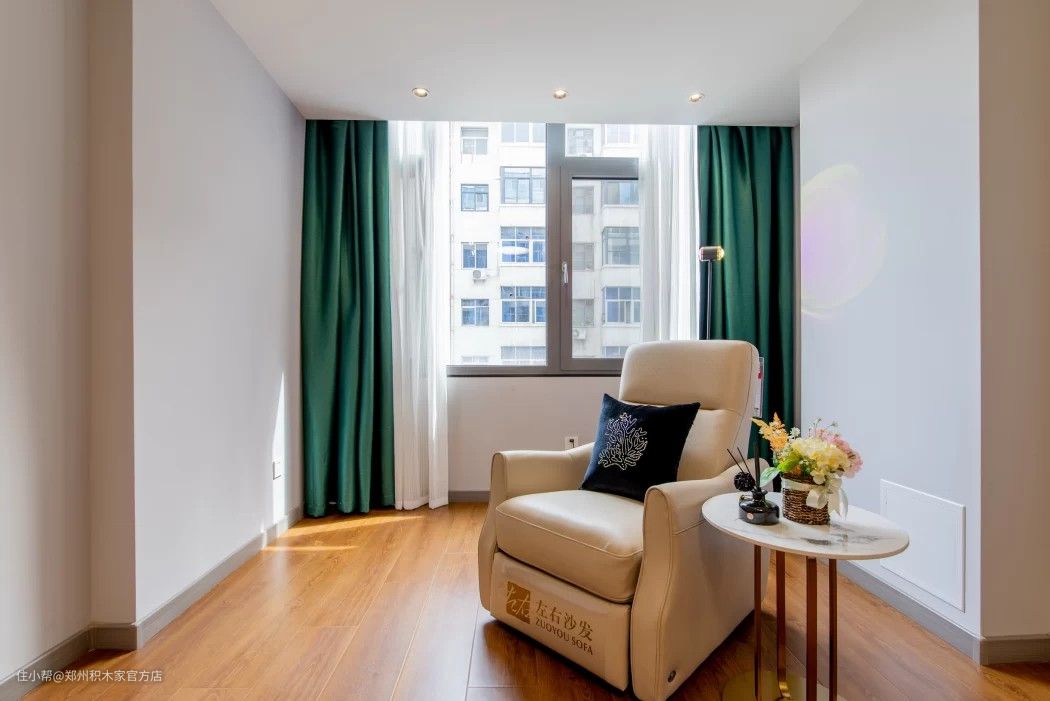 同时,这种深邃的蓝色也能为房间增添一份神秘感和浪漫气息。 而在次卧的角落,我们放置了一盏落地灯。这盏灯柔和的光线给整个空间增添了一份温暖和舒适感。当我们晚上躺在床上看书或者放松时,这盏灯成为了我们最好的伴侣。它的柔光营造出一个温馨而宁静的氛围,让我们心情愉悦。