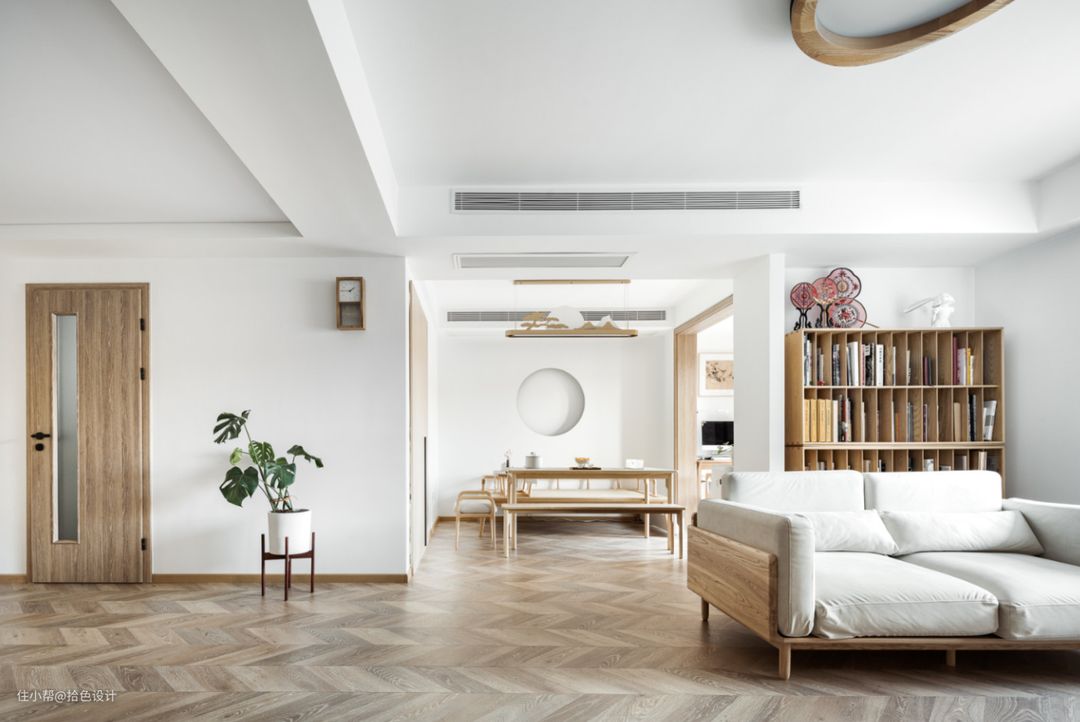 本期带来的这套案例,就将这两种风格进行了结合,并通过自然质朴的材质,创造出了一个极为舒缓温润的场所。让人一进门就有一种沉醉于时光的美好,且尽显东方气韵。
