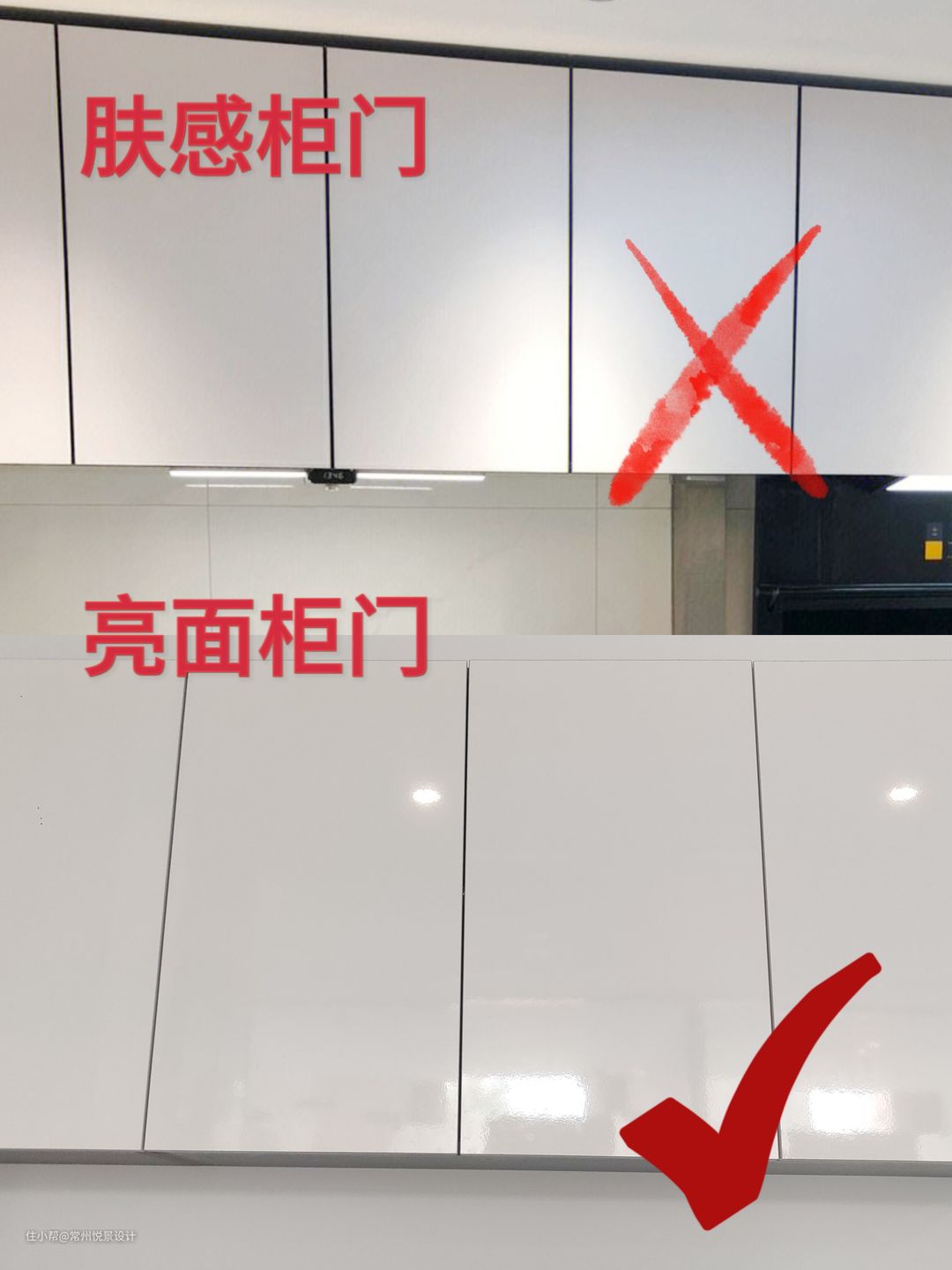 4️⃣厨房柜门怎么选?厨房柜门不建议选择肤感柜门,肤感的柜门摸上去柔又滑,有质感但是缺点就是油烟不好洗。✅预算不充足选择高光柜门,好看有质感虽然会留指纹但是好清洁。✅预算充足可以选择静电粉喷,硬度特别高,防刮防磨耐油污,缺点就是非常的贵。