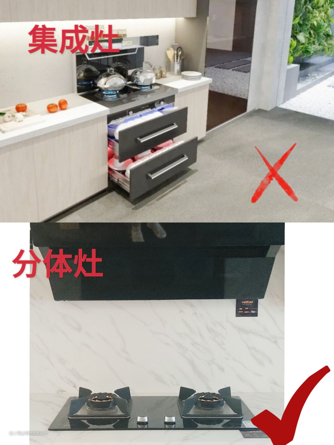 2️⃣集成灶分体灶怎么选?现在很多人都在推荐集成灶,集成灶的卖点就是小巧,很适合公寓等小厨房,家里厨房大的就不用考虑了。又或者你家里的灶台就只能放在窗户下面,没有地方挂油烟机的话,就很适合集成灶。大部分集成灶功能也比较多,功能多了就比较容易坏❌,到时候维修也比较贵且耗费精力。集成灶由于上面吸烟部分比较矮,✅更适合平常做西餐的家庭使用,不然做中餐,使用高一点的锅就比较不方便。但现在集成灶有自清洗功能,相对于分体的手动清洁会方便很多。有些集成灶还有一个比较致命的问题就是开火的时候能吸火,吸火有爆炸燃烧的风险,所以集成灶要仔细挑选。➡️分体灶相对于便宜,坏了懒得清洁了就可以扔了直接换一个。选择分体灶式,要选择风量21以上,噪音小于65分贝。风压如果你在十楼以下选择450帕,十楼以上选择350pa以上。油脂分离度要选90%以上的。