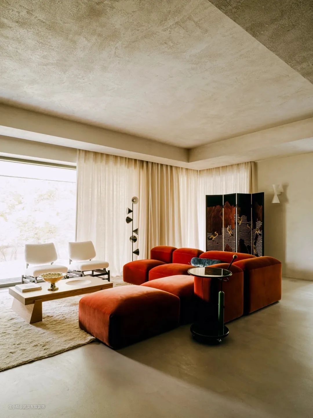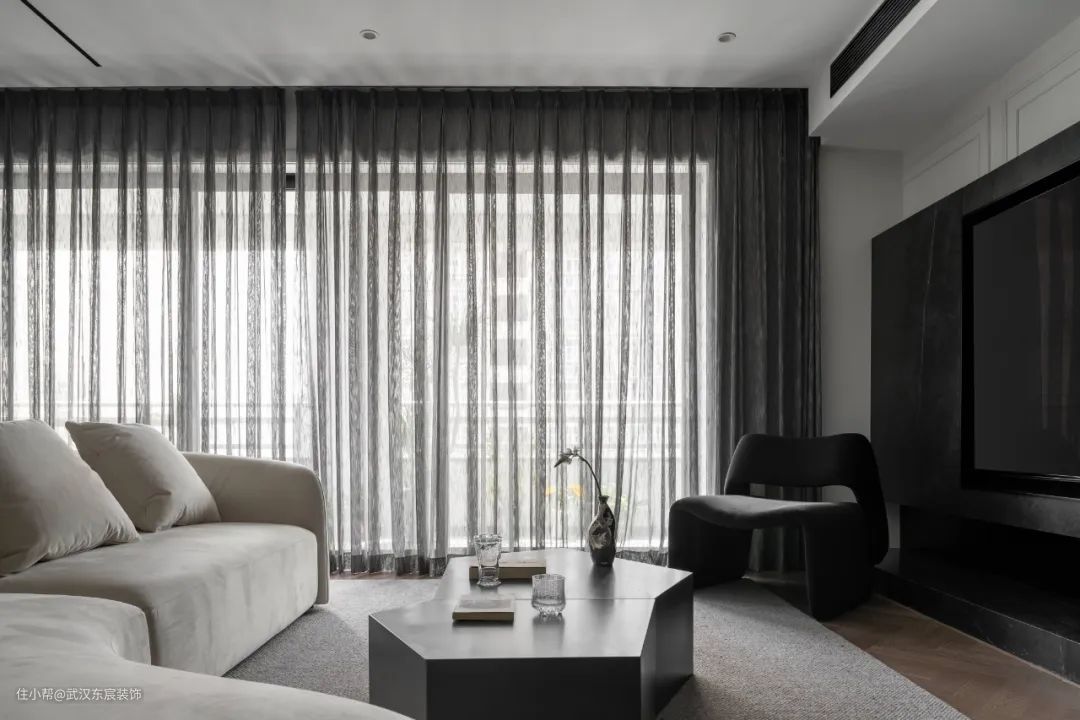 当沙发跟着窗帘走时,会有遥相呼应的平衡感,有利于调解空间调性。