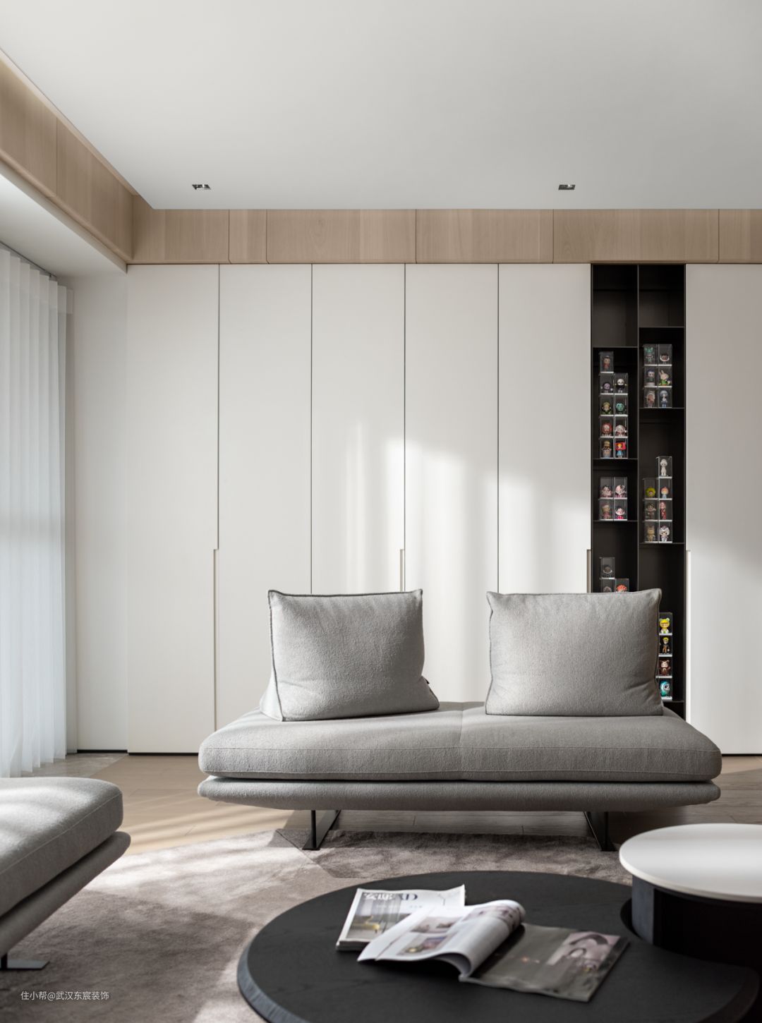 浅色搭配也是如此,或同系不同色,毕竟兄弟姐妹都是一家人。如墙面奶油灰+沙发米色、墙面米白+沙发奶咖、墙面浅米黄+沙发深米色。