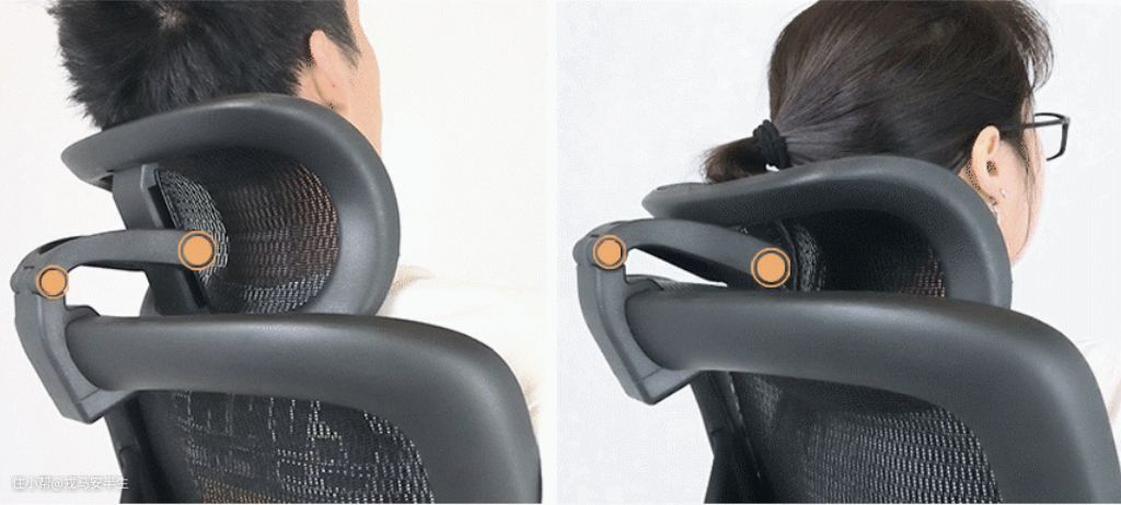 但是不同款人体工学椅对不同身高人群的贴合度是不一样的,买错会导致你够不到头枕,不够贴合颈椎,因此头枕的调节性很重要。