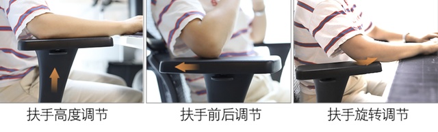 扶手一般分为上下(可以和桌面持平)、前后(适合后仰休息使用)以及左右(大臂和小臂形成夹角)调节,调节性越多,坐起来会更加舒适。