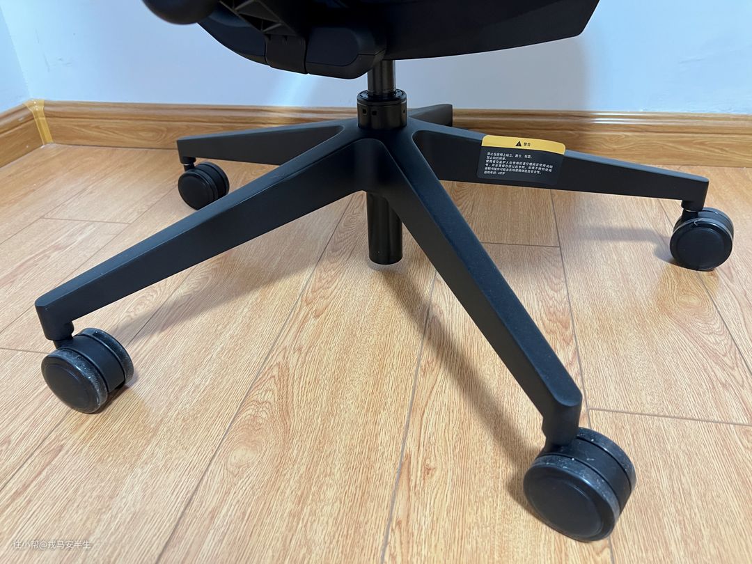 虽然椅脚是尼龙脚,但是气杆使用了四级气压杆,四级气压杆一般都是在中高端椅子才会使用的,安全性杠杠的。