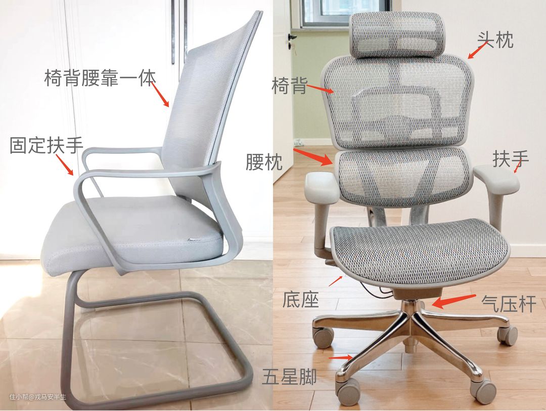 先来了解人体工学椅的大致结构,才知道怎么挑选到适合自己的椅子。