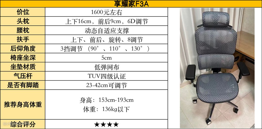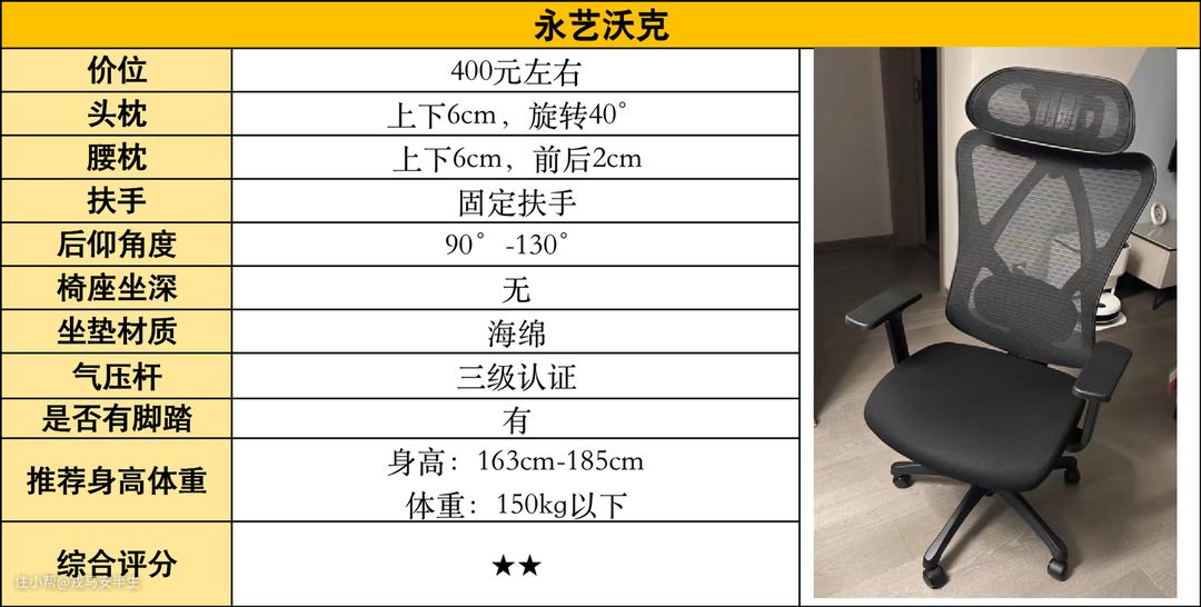 优点:腰部支撑力强,偏瘦的人坐上去会感觉很顶腰。 不足:不太适合腰椎比较脆弱的朋友,后仰时会费力一点。