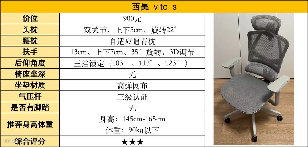 优点:西昊Vito S非常适合小个子朋友,腰部贴合度好,颜值也比较高。 不足:坐垫网布略微偏硬一些,下腰靠的弧度有点大,偏瘦的人会觉得有点顶腰,其他方面都很不错。