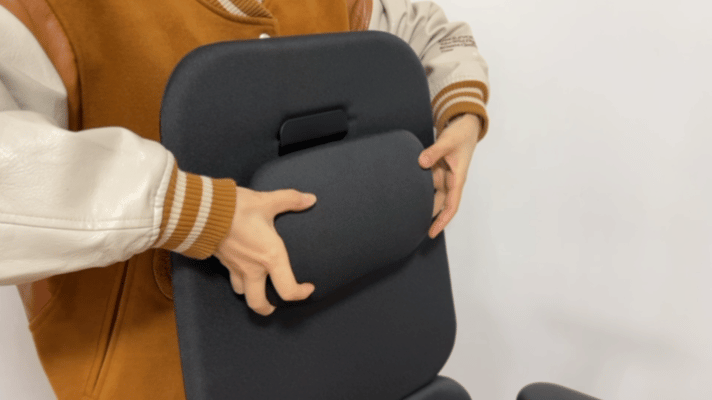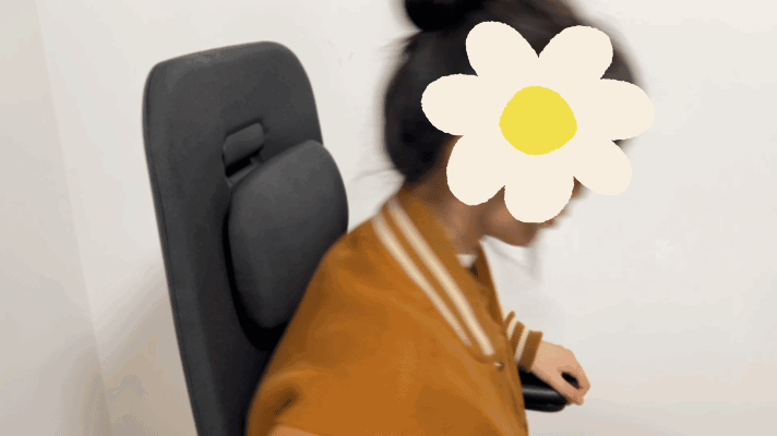 我让我小个子女朋友体验了一下,从动图中可以看到,头枕可以和颈部贴合,正好卡在颈椎的位置,贴合度也不错。