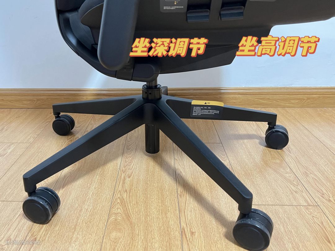坐高坐深的调节就在椅子坐垫下的右边,有座深调节的椅子可以根据自己的腿长调节坐垫长短,建议大小腿呈90°,坐垫比大腿小3个手指宽度,这样坐起来会更舒服。