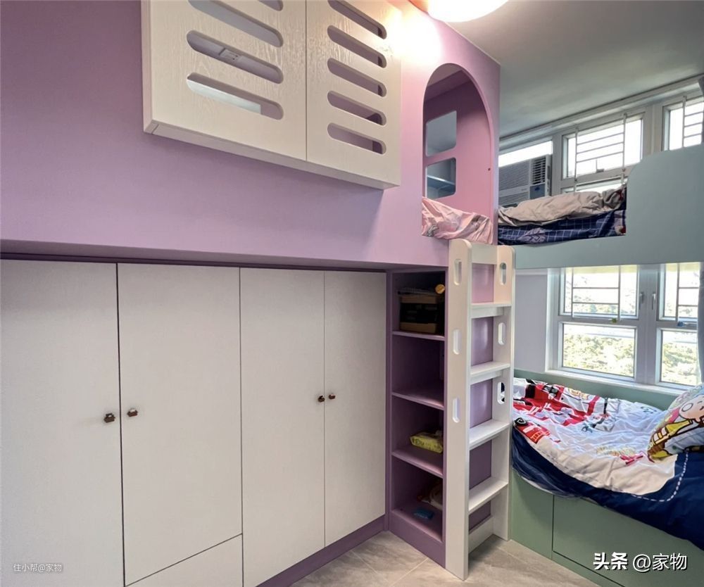 一对生活在香港的中产夫妇,就买下了这样一个小家,它的面积有380平方呎,换算下来差不多是35.3平方米左右,如此小的空间,却住下了一家五口。