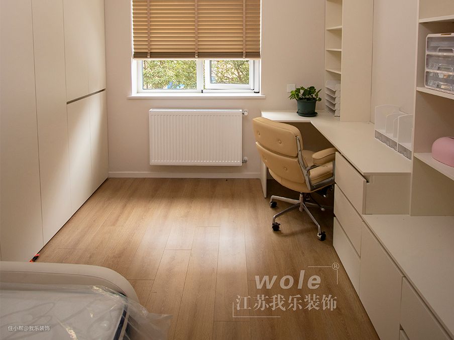 3、通铺浅黄色木地板,这种色调对采光不挑剔,和各种家居风格都能完美搭配。