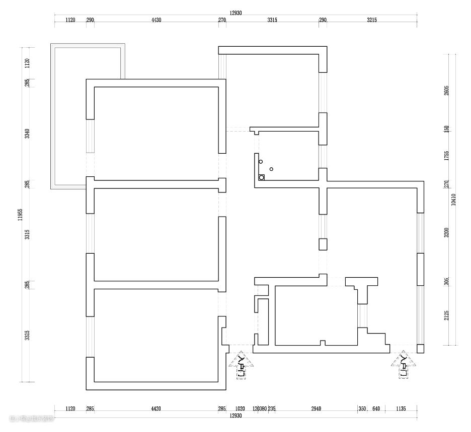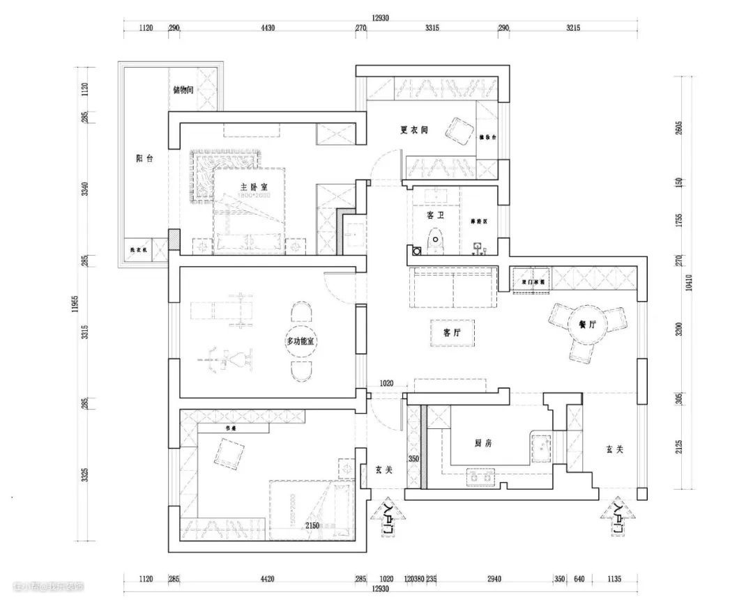 这是一套老房翻新案例,原始户型中,客厅在次卧和餐厅的中间,采光和通风严重不足,室内阴暗,收纳不足。