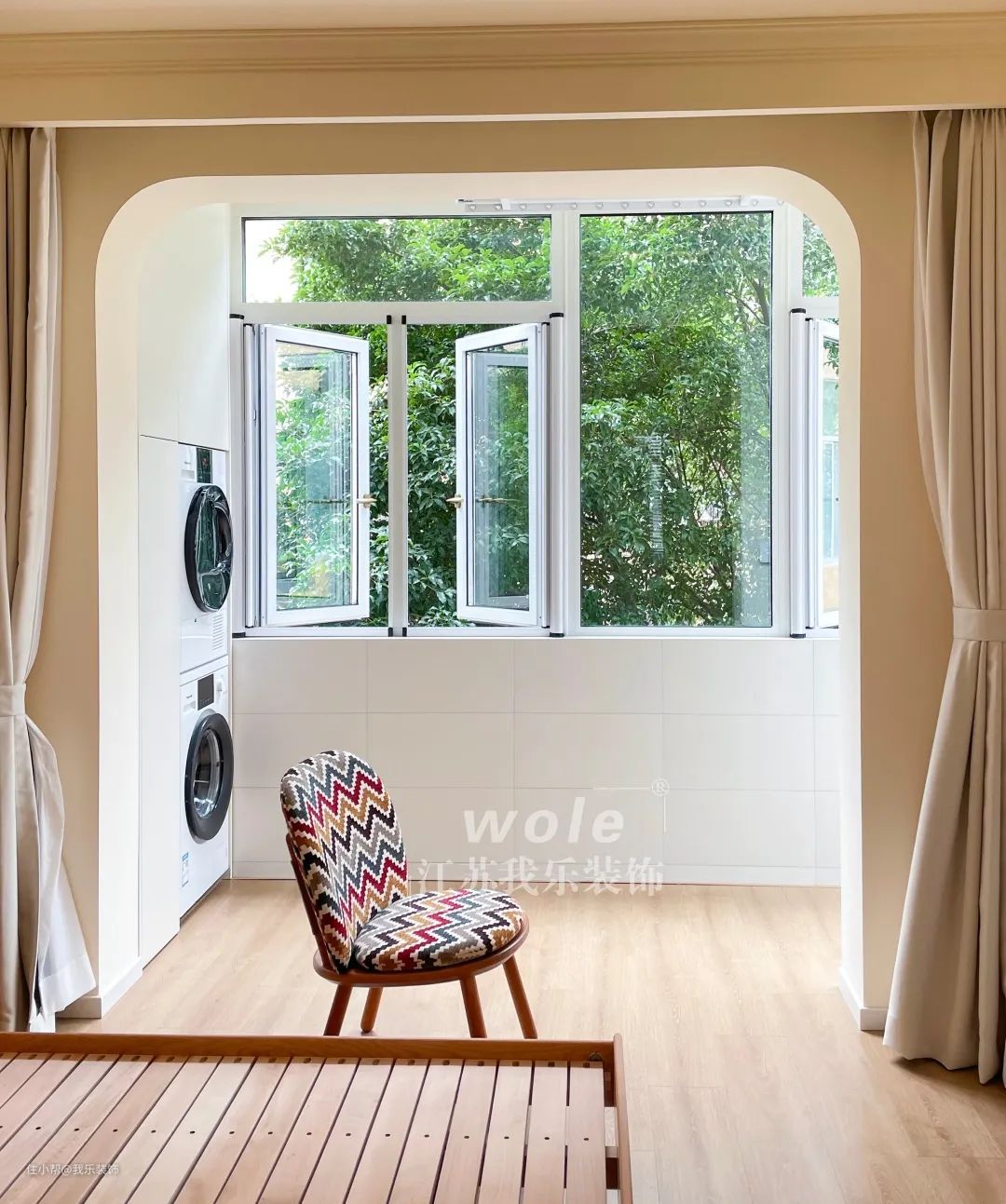 主卧和阳台打通,作为生活阳台使用。不仅增加主卧的采光,还可以让视觉效果变得更加敞亮大气。