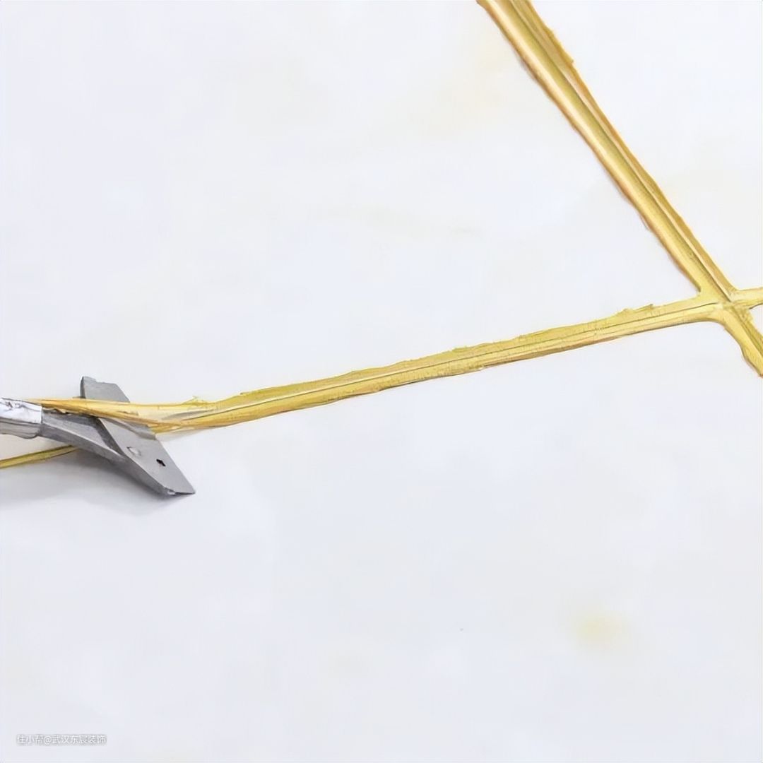 主要方便后期对于余料的清理,处理阳角区域一定要紧靠阳角位置凸起的两个侧面打蜡,千万不能直接对准阳角中心线打蜡,否则会导致美缝时粘接效果变差。