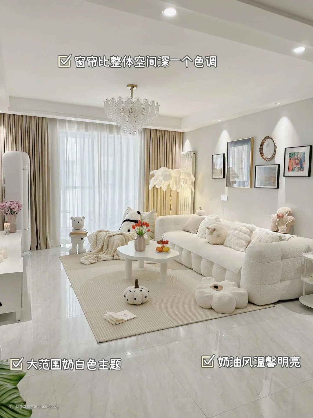 ①窗帘与空间主色调统一:如果软装大面积都是浅色调,窗帘可直接融入主色风格,和谐感强
