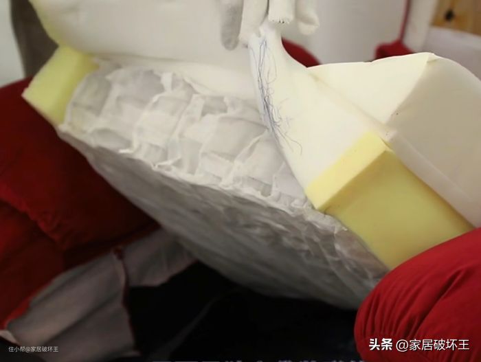 3、沙发的底布,好的应该用拉布材料做,无纺布做底布没几年就全碎成渣渣了,另外底布有半新料和全新料区别,半新的两年就会老化碎掉。当然跟使用环境也有关系。