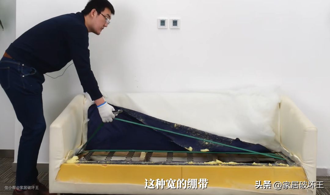 1、全绷带结构,也就是沙发底部用高弹性绷带交叉固定。