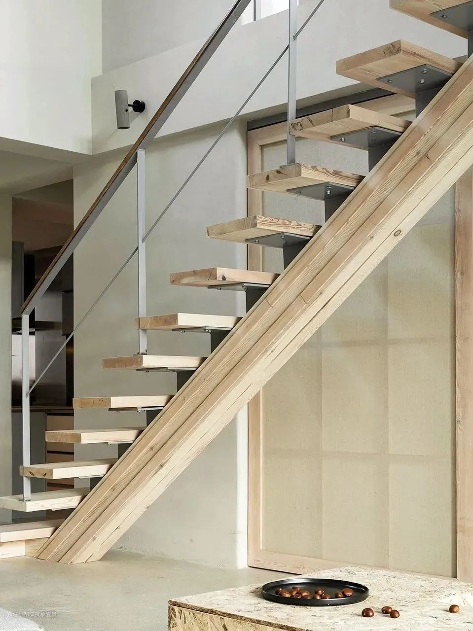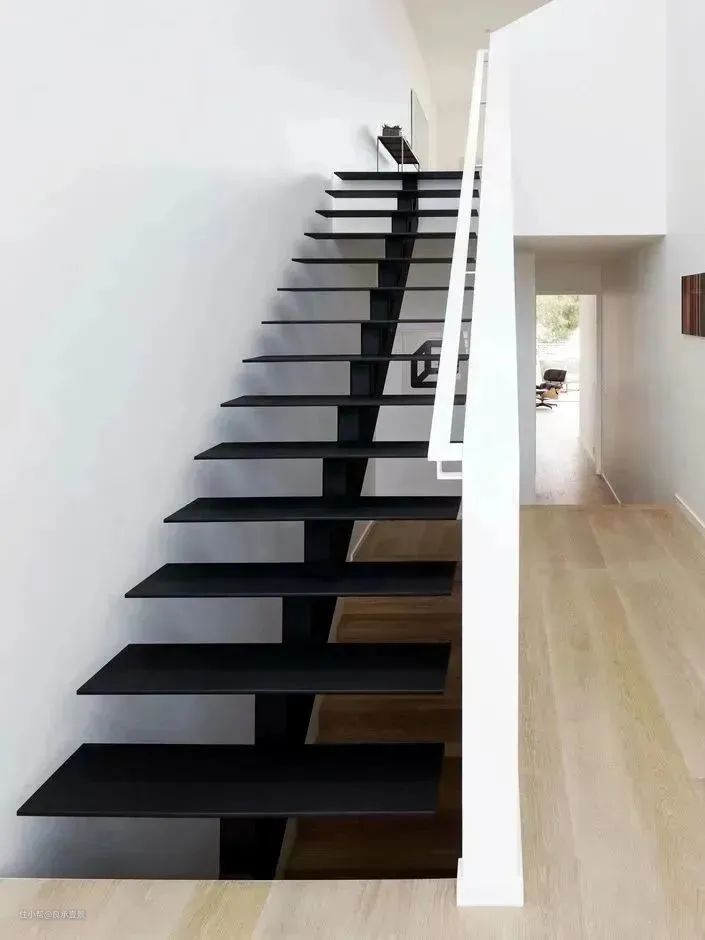 直梁双梁楼梯的设计良承壹景2023-08-09直梁楼梯每层踏步衔接下方细长斜梁是直梁楼梯的外观特征,钢构结构搭配实木踏面,结实自然,适用于住宅和煦的环境。双梁楼梯楼梯两侧斜梁中间嵌以层层踏步,予以强有力支撑。或者解锁双梁楼梯的另一种造型,将一侧斜梁隐藏于墙面,以墙面支撑起受力,对有限的住宅空间再适合不过。